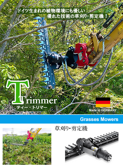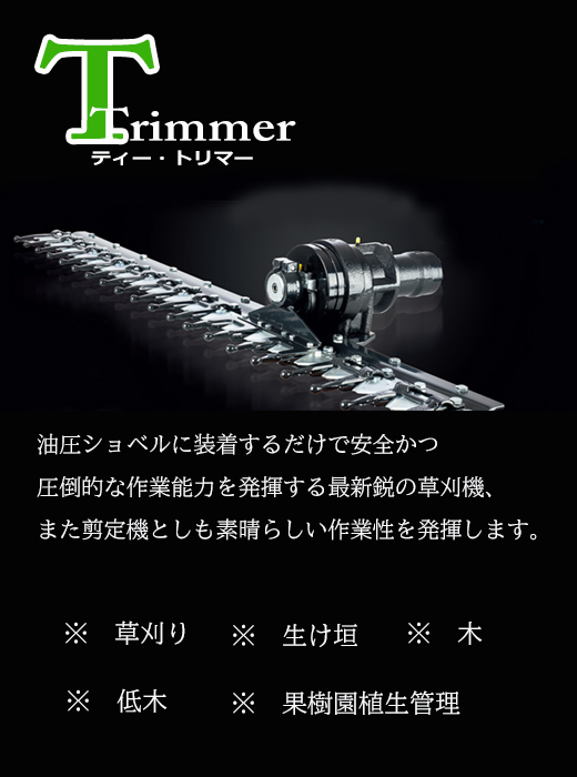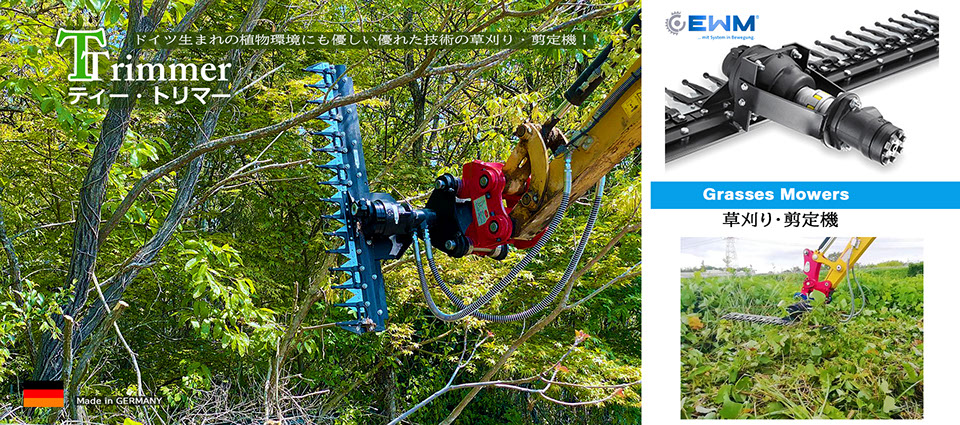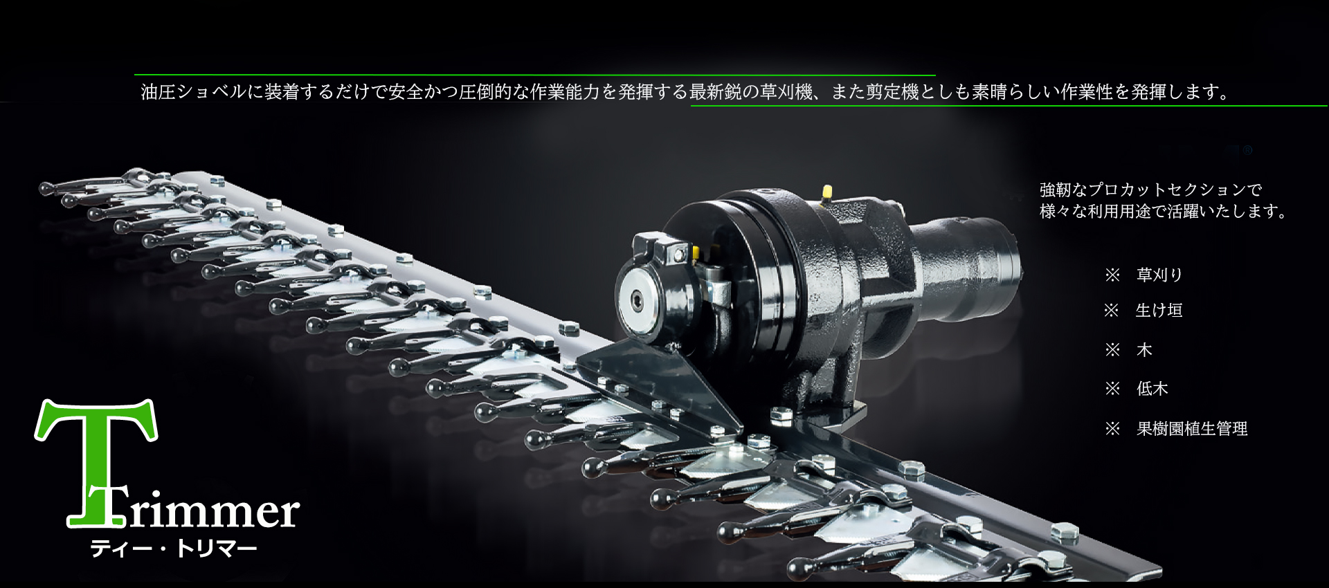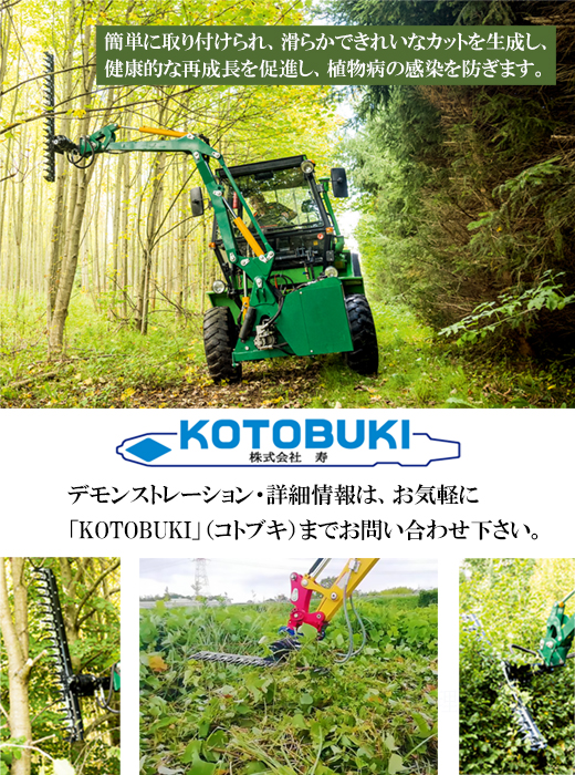 油圧ショベルに装着するだけで安全かつ圧倒的な作業能力を発揮する最新鋭の草刈機、また剪定機としも素晴らしい作業性を発揮します。